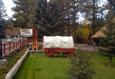 Big Bear Frontier: Our hotel (cabin? resort?). Sadly, I did not sleep in the covered wagon.